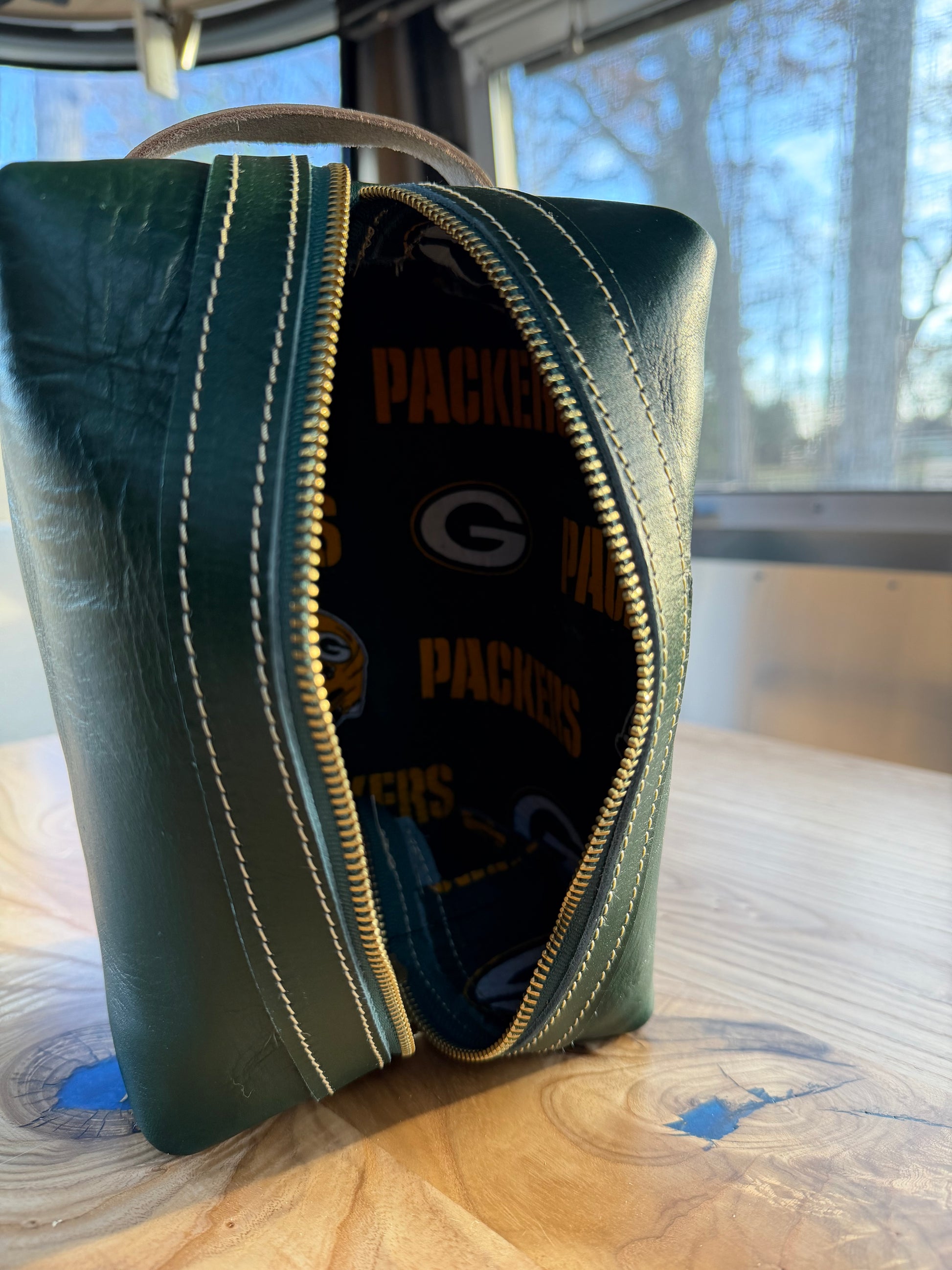 The Canyon Dopp Kit from our Wisconsin Spirit Series blends full-grain leather, small-batch craftsmanship, and officially licensed team fabrics for a travel piece that feels both elevated and unmistakably local. Quiet refinement on the outside, pure Wisconsin pride on the inside.
