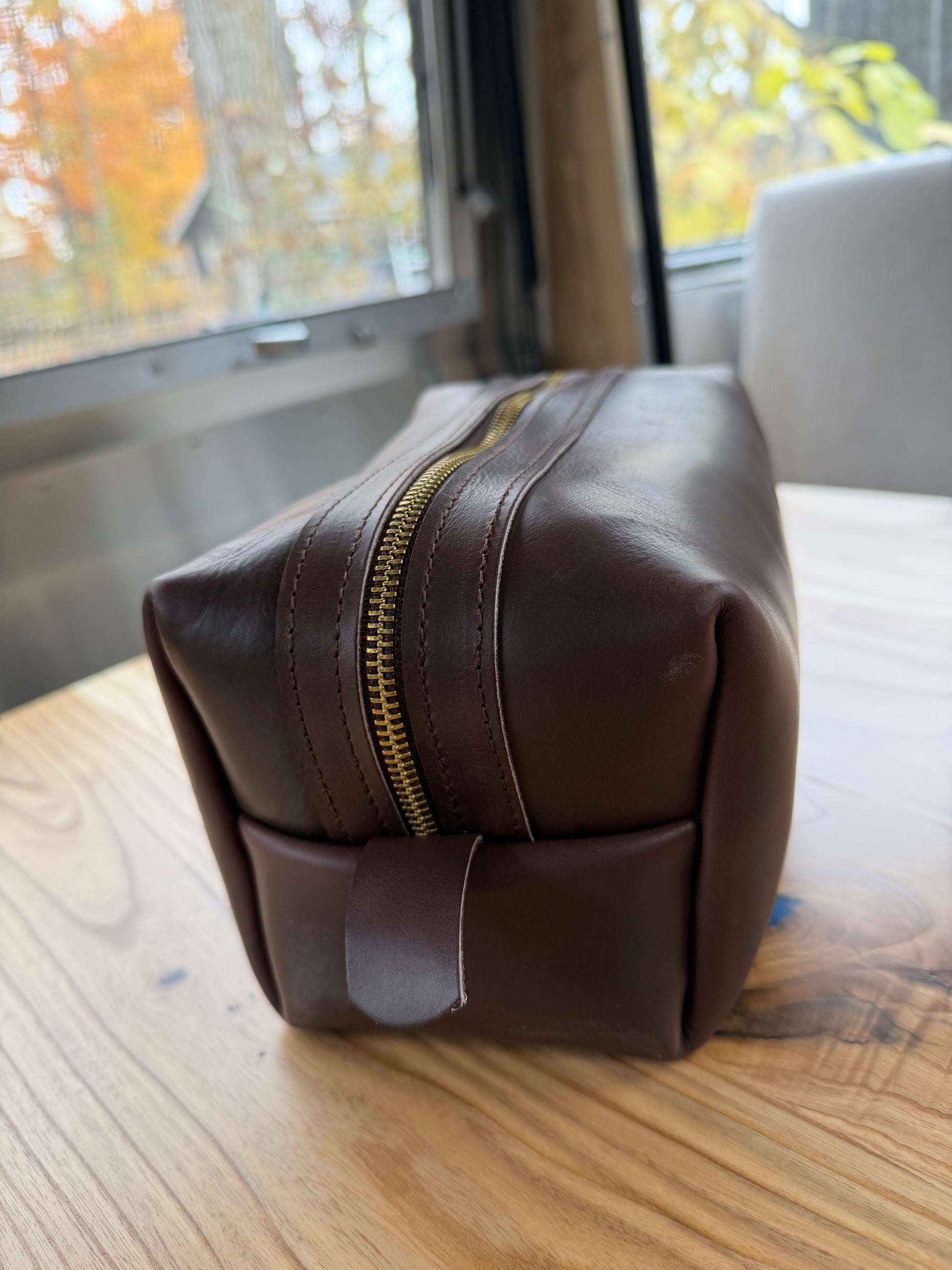 Handcrafted in small batches for travelers, makers, and everyday wanderers, the Canyon Dopp Kit is a sturdy full-grain leather companion built to age beautifully. Its clean lines, wide-opening zip design, and perfectly compact size make it just as useful in an Airstream, weekend cabin, hotel room, or gym locker.
